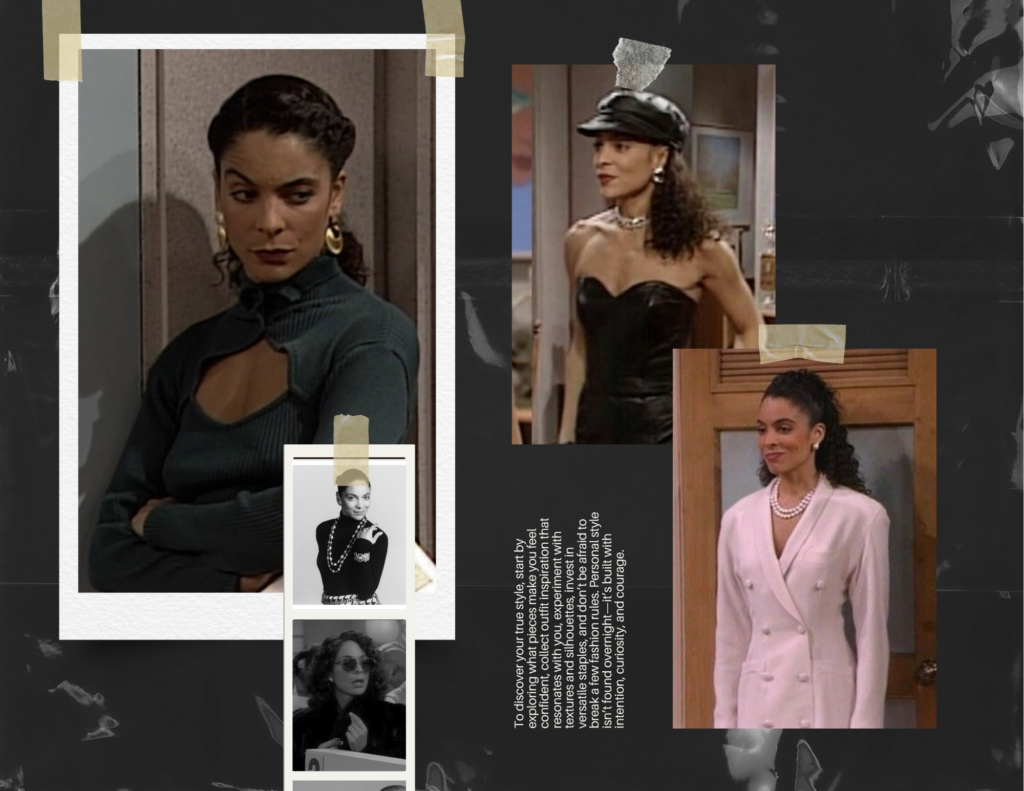 Whitley was Black Girl Luxury before it was trending. Watching her on A Different World was my first real exposure to what “bougie” looked like through a Black lens. She reminded me a little of Scarlett O’Hara (yes, Gone with the Wind is problematic—we’re not ignoring that), but hear me out: both women used fashion, femininity, and ambition as their secret weapons. Whitley’s power suits were always saying something before she did. She made it clear: you can be delicate, stylish, and still run the room.